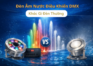 Đèn âm nước DMX khác gì đèn thường? Phân tích chi tiết về hiệu ứng, khả năng điều khiển và ứng dụng trong nhạc nước nghệ thuật.