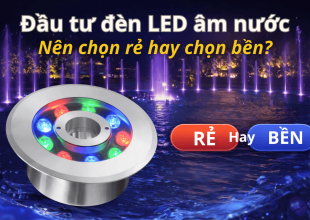 Tìm hiểu kinh nghiệm chọn đèn LED âm nước giá rẻ mà vẫn đảm bảo bền đẹp, chống nước IP68, ánh sáng đa màu sắc. Giải pháp chiếu sáng cho hồ cá, đài phun nước, resort và công trình ngoài trời.